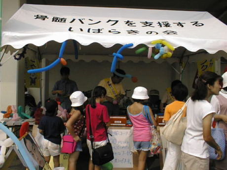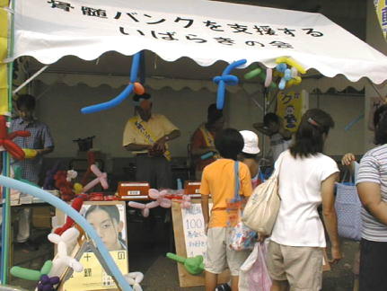 | 今回、初お目見えの「いばらきの会」テントです。 | ちょっと暗くてわかりずらいですが黄色い服が梅田さんです。 |